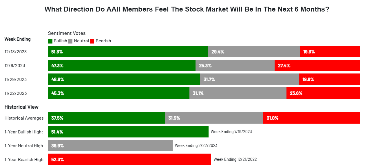 ✅ We are now (as of Dec 13) at Majority Bullish 50%+ for AAII sentiment; however, I think it can actually go higher for Dec (then Jan 2024 comes caution).