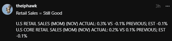 Golden Path: Retail sales beat expectations—the US consumer is healthier than expected = economic growth continues.