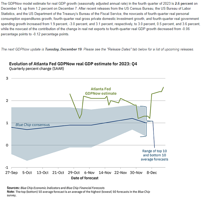 Atlanta Fed GDPNow tracker updates to 2.6% GDP growth—and economic growth while inflation is falling = Golden Path.